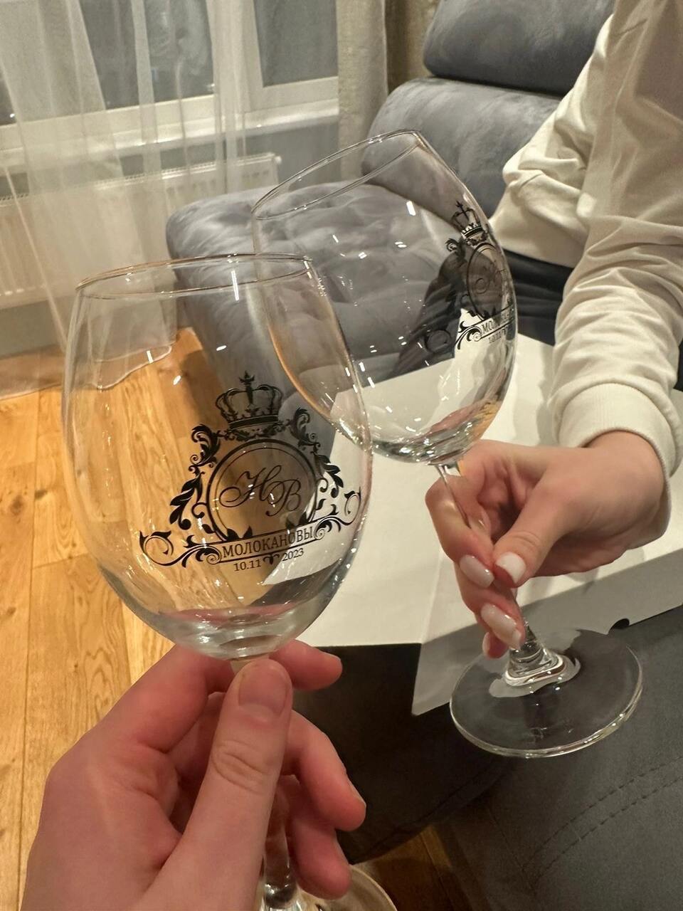 Заказывала 2 бокала для вина. Это так круто и красиво получилось! Красивая упаковка, быстрая доставка! Красивый подарок! Спасибо большое Вам!