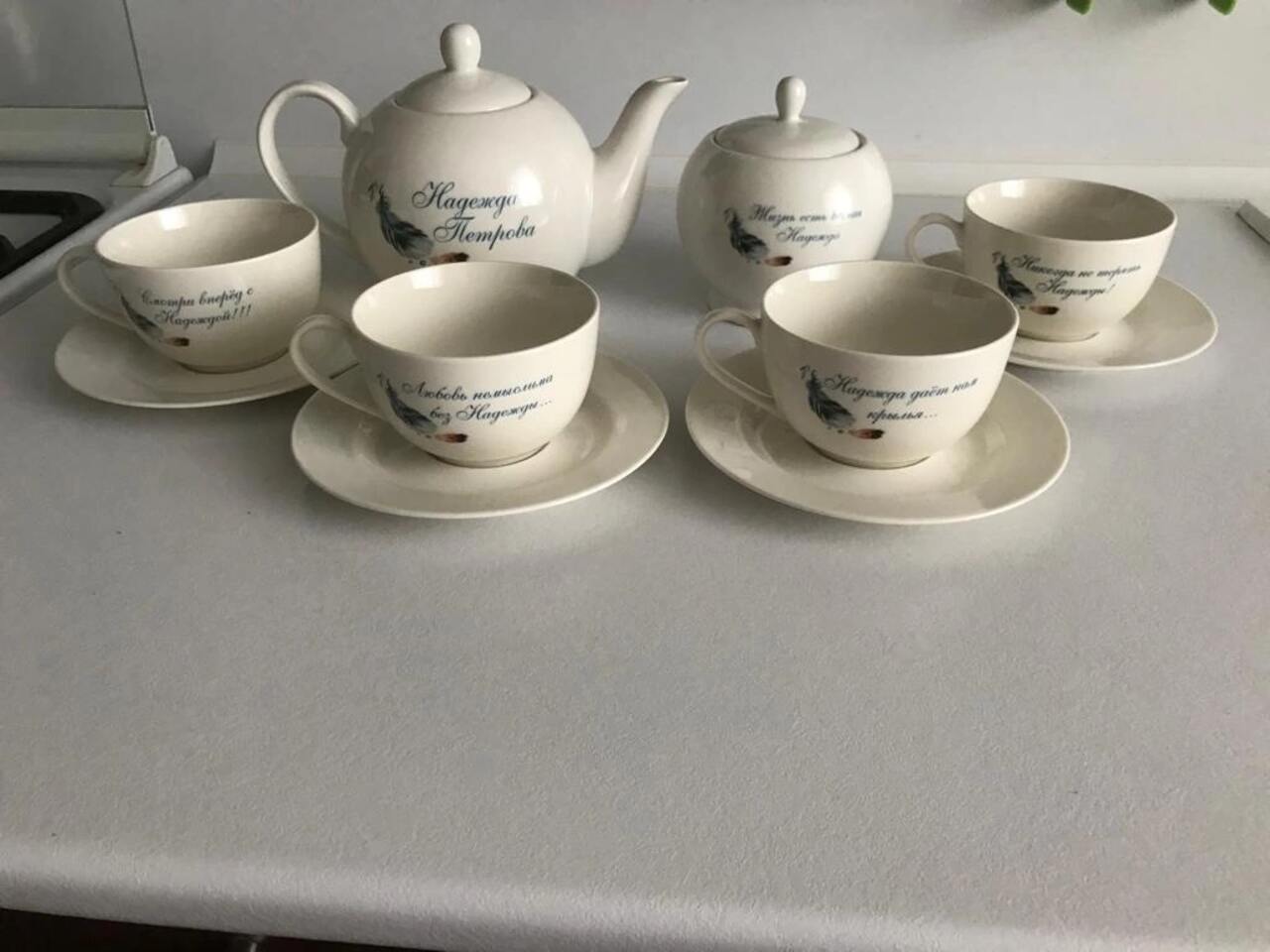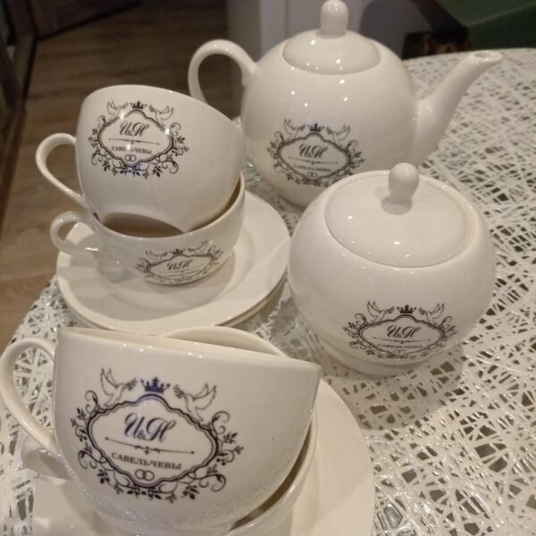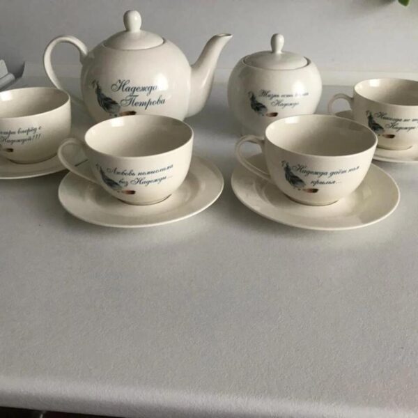 По вашему желанию на отдельные предметы могут быть нанесены различные надписи и рисунки, в том числе печать предоставленных вами изображений, при наличии технической возможности. На второй стороне изделий из фарфора также может быть размещено дополнительное изображение.