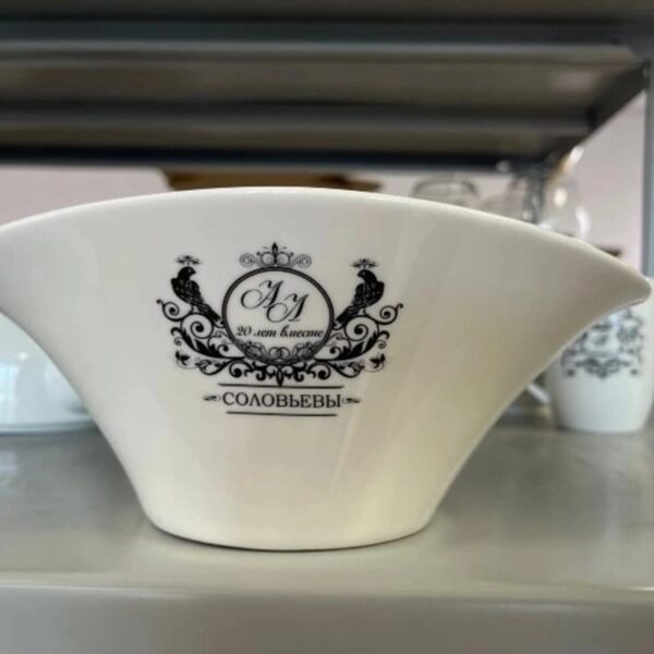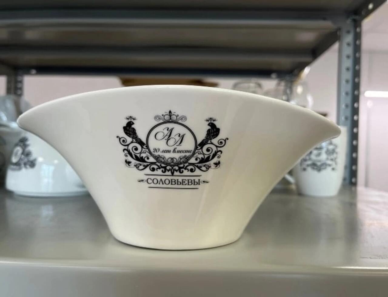 Все изделия изготовлены из костяного белоснежного фарфора специально для нашей компании.