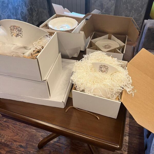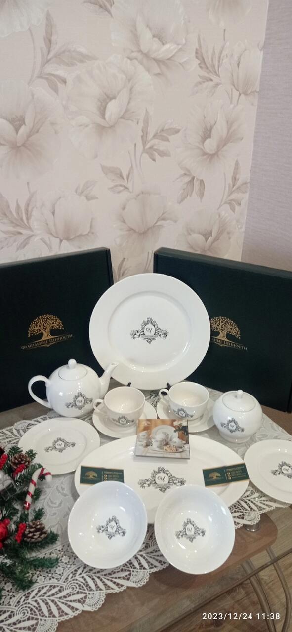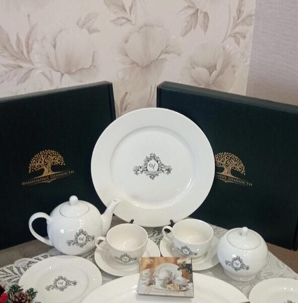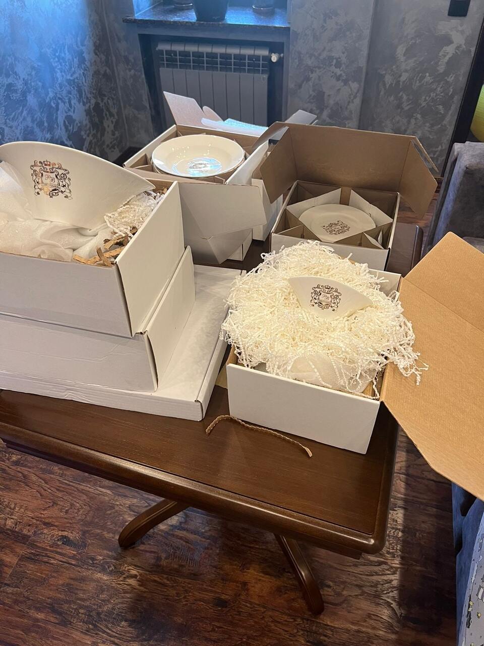 Спасибо за великолепный комплект! Заказывала детям на годовщину свадьбы. В комплект вошли чашки, блюдца, тарелки различного размера, салатники, блюда. В СДЭКЕ получала три упаковки. Всё дошло в целости… Когда вскрыла упаковку, порадовали фирменные пакеты для коробок с посудой. Всё сделано с душой и вниманием к покупателю!